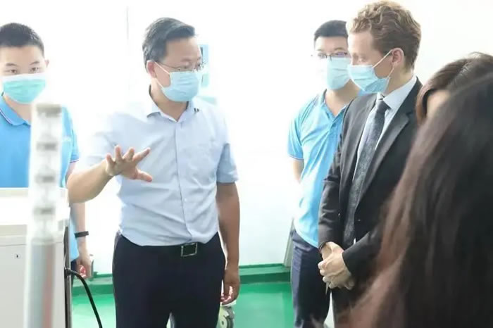 高光勇為來訪者講解SWS-5000型連續(xù)性血液凈化設(shè)備
